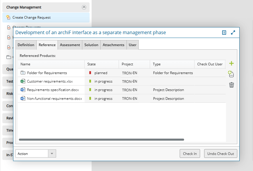 Do you want to carry out separate, formal checks as part of a defined process? No problem, because you not only define statuses, but can also specify the entire handling of changes according to your requirements. This gives you optimal support for dealing with all changes that arise.