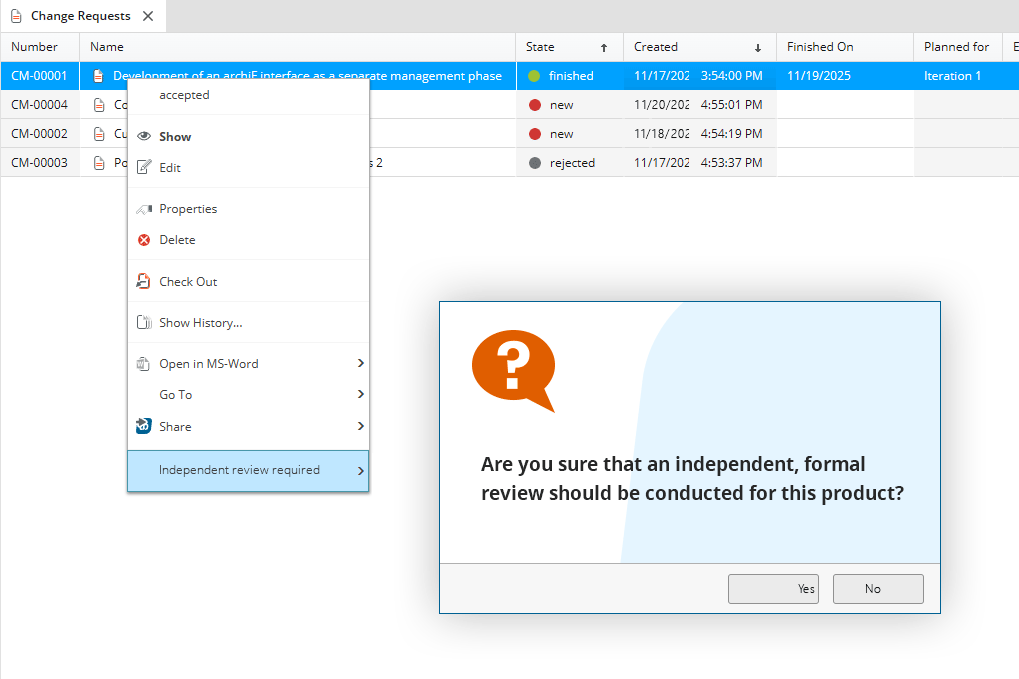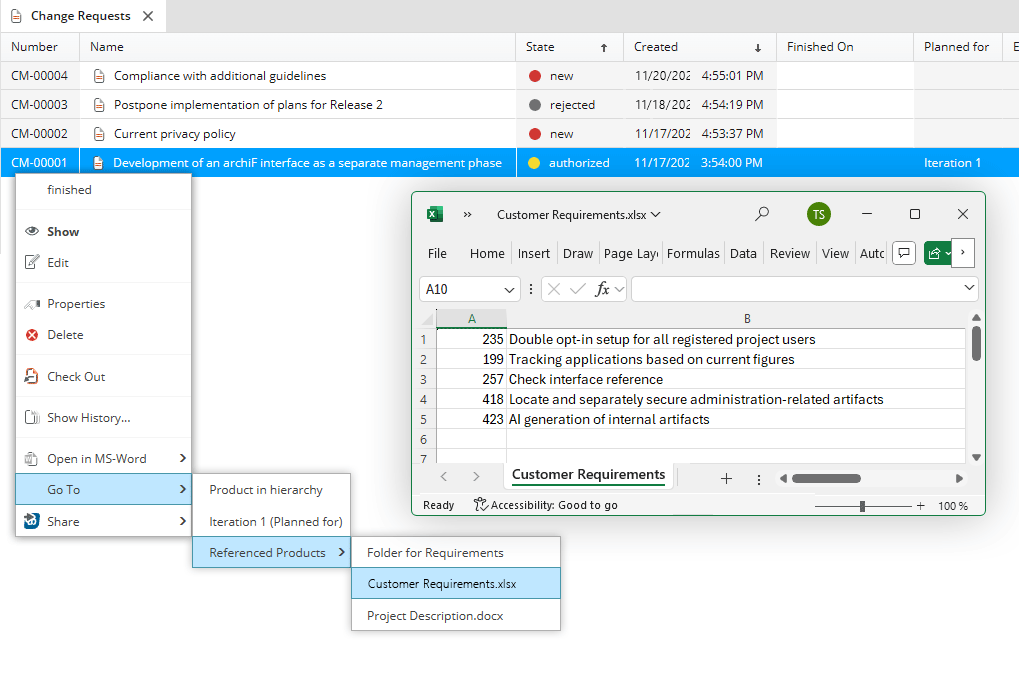 Changes constantly affect other aspects of the development processes in your projects; be it individual requirements, documents, products or other elements.