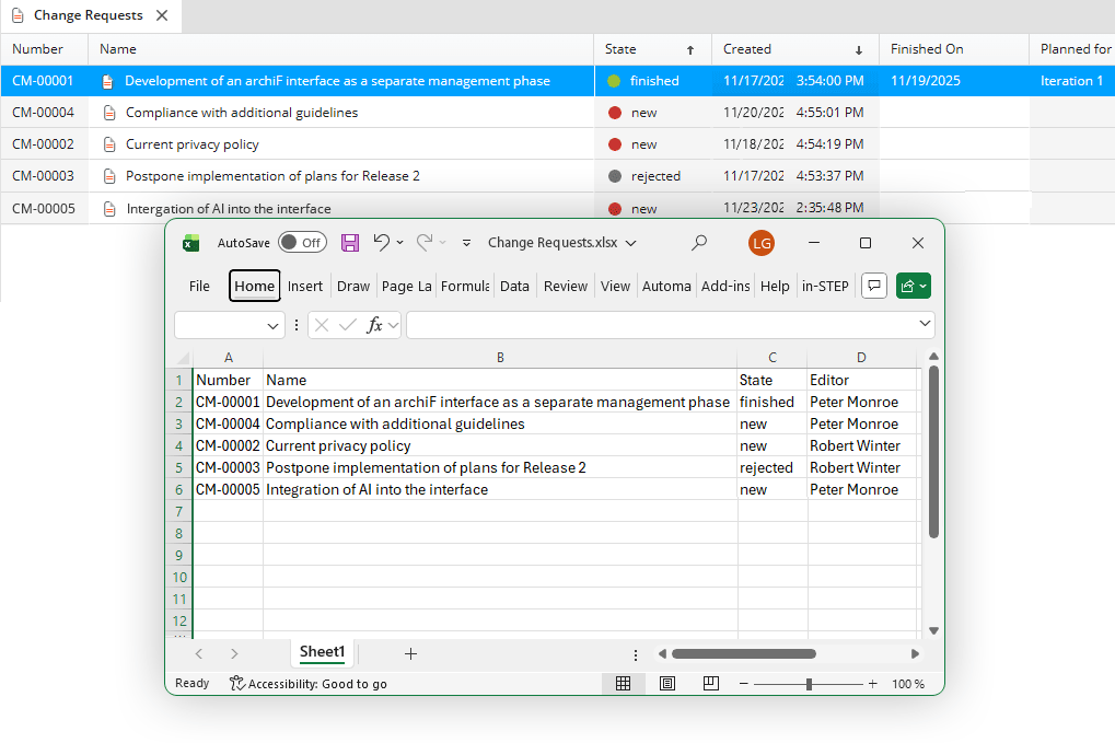 With in-STEP BLUE, elicting and detecting changes is as simple as it gets. With structured and easy-to-use forms you have an instant overview of each and every change, at any time.