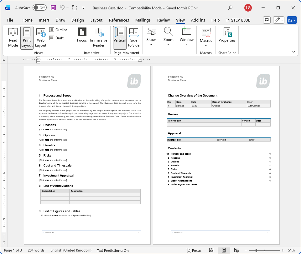 in-STEP BLUE makes your work easier with the use of numerous templates to help you create a range of products, documents and automatically well maintained cover pages. It also has a sophisticated versioning feature and a comprehensive rights-and-roles management system. PRINCE2 makes project management child’s play.