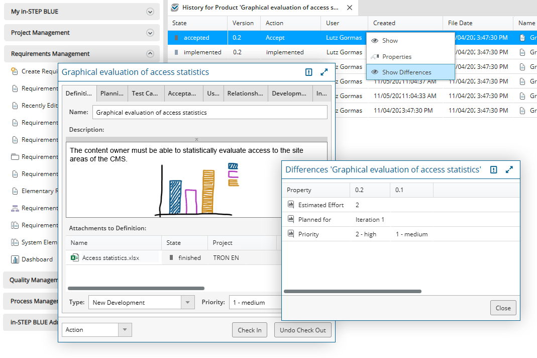 With in-STEP BLUE you support the project manager. The requirements manager. The tester. And many, many more. With configurable views for all project contributors, in one common working environment.