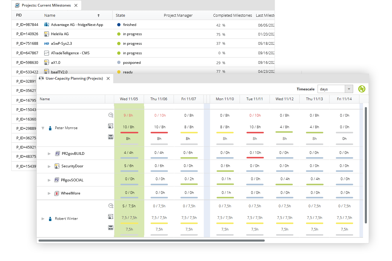 If you are already working in a shared system, then you can of course easily evaluate information. Get an overview of the status of your projects and the deployment of each individual employee system-wide at any time.