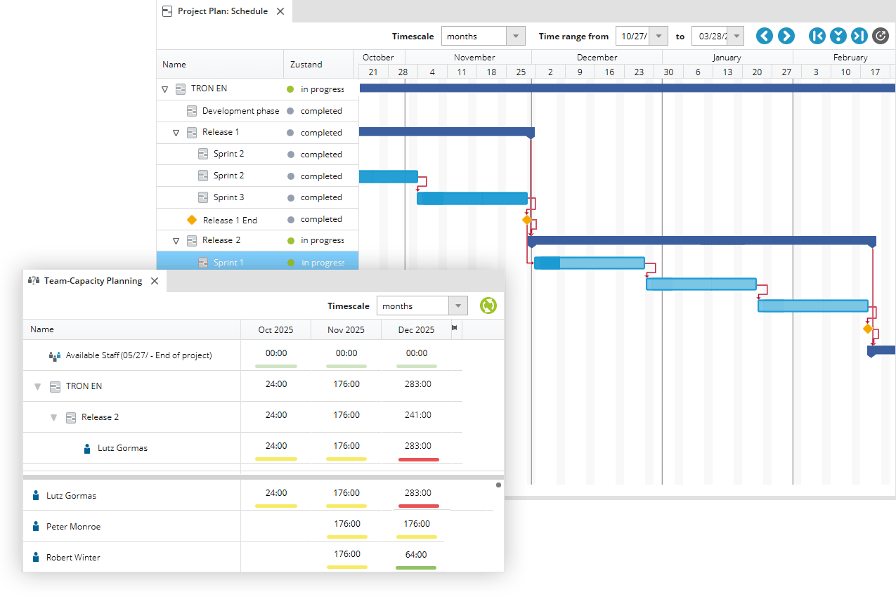 The interplay of these three factors is often called the magic triangle. The ultimate goal of all project management efforts is to ensure project success while taking these factors into account. And in-STEP BLUE is the project management tool for it.