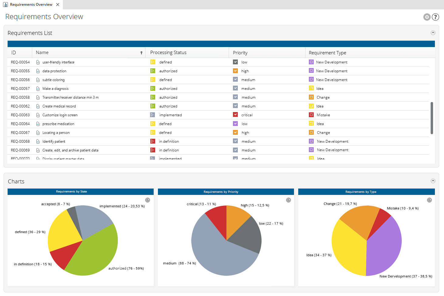 - Monitor your requirements effectively through color indication.