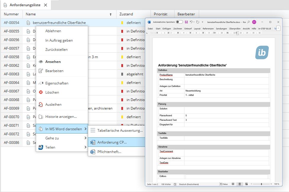 - Erstellen Sie mit minimalem Aufwand aus Anforderungen ein Pflichtenheft bzw. Lastenheft