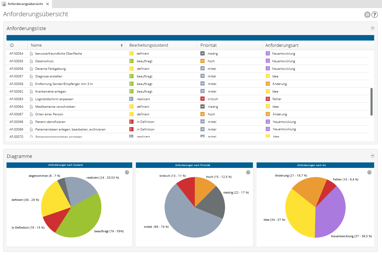 - Sehen Sie immer direkt, wie es um die Bearbeitung einer Anforderung steht