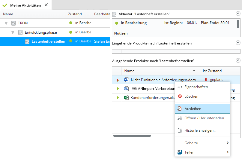 Das Erscheinungsbild von in-STEP BLUE passt sich automatisch den Aufgaben und Berechtigungen eines Mitarbeiters an, so dass es keine unnötige Ablenkung gibt. Der Mitarbeiter, der das Lastenheft erstellen soll, kann so direkt aus seiner ToDo-Liste heraus auf die zu bearbeitenden Dokumente zugreifen.