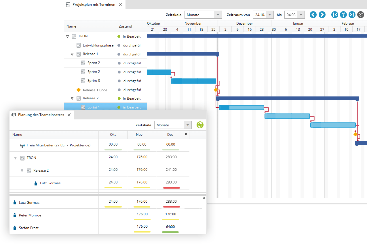 - Arbeiten Sie im Team mit einem stets aktuellen Gantt Diagramm