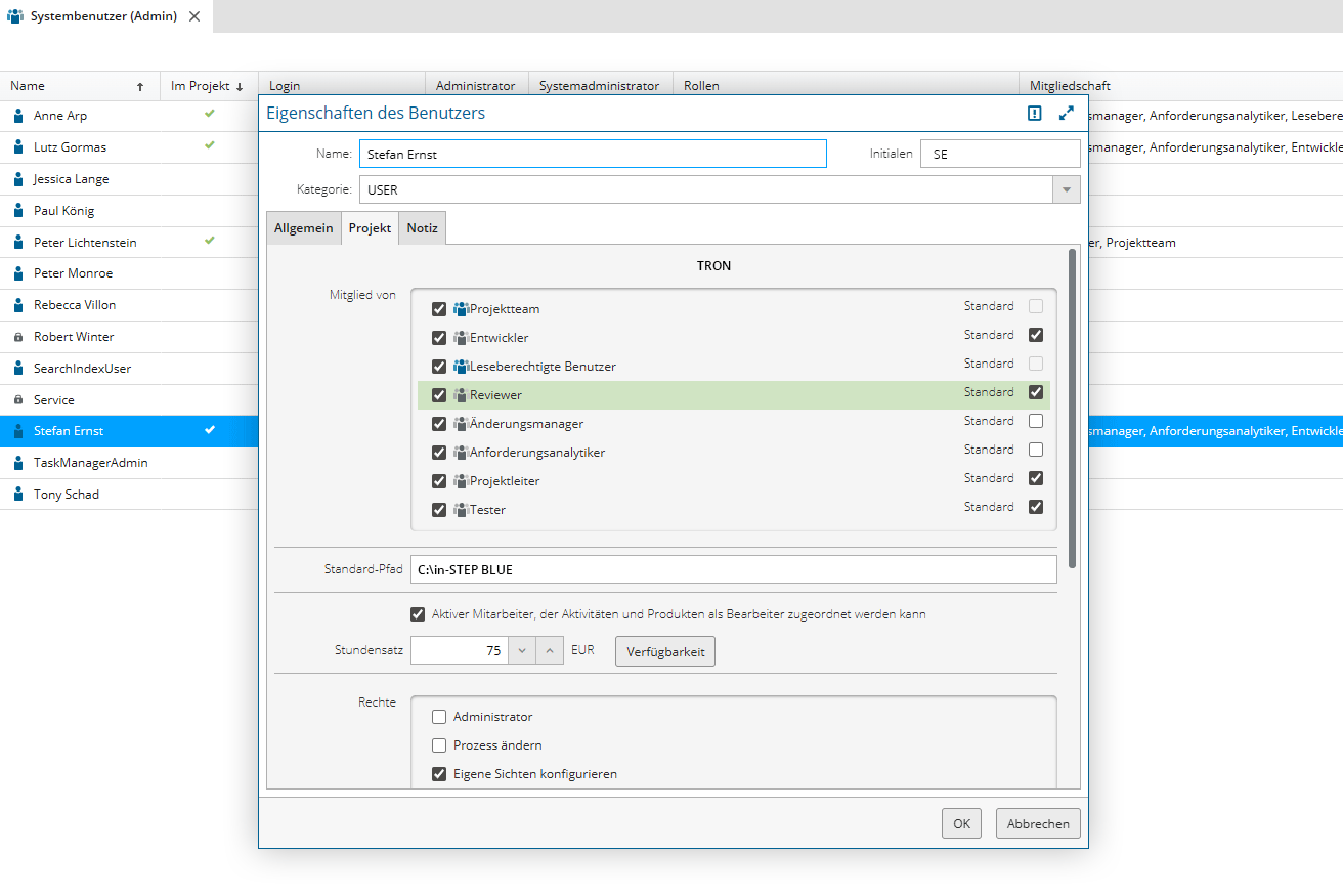 - Vererben Sie Rechte von Rollen an konkrete Mitarbeiter und beschleunigen Sie so die tatsächliche Projektplanung