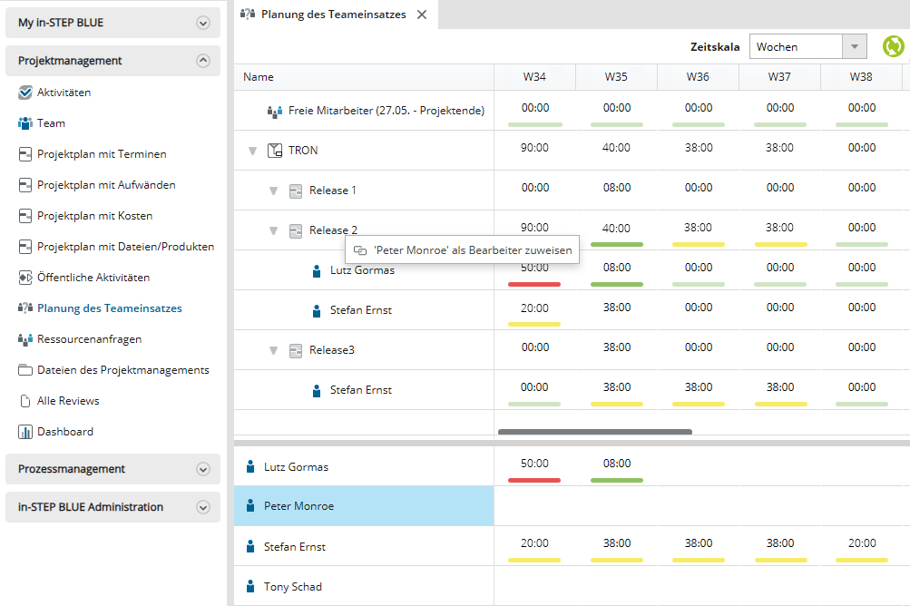 - Verteilen Sie Mitarbeiter auf Projekte und überlassen Sie die Feinplanung dem Projektleiter