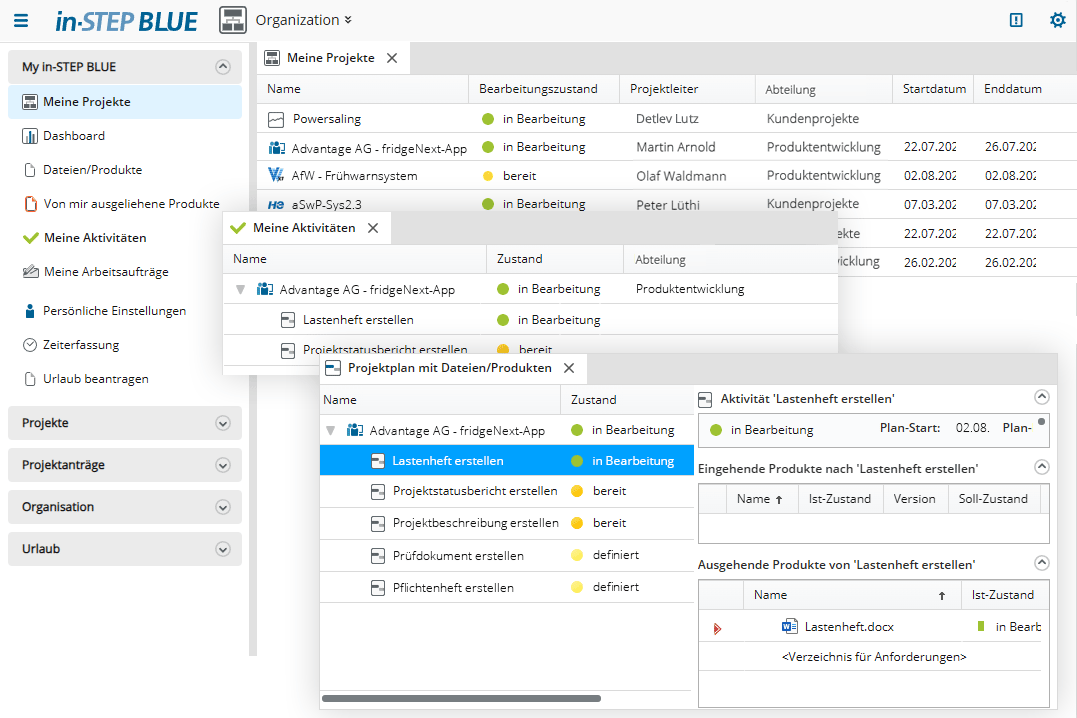 Auch für Mitarbeiter wird das Arbeiten durch in-STEP BLUE leichter. So erkennt jeder Mitarbeiter sofort, in welchen Projekten er tätig ist und welche Aufgaben in diesen Projekten anstehen.